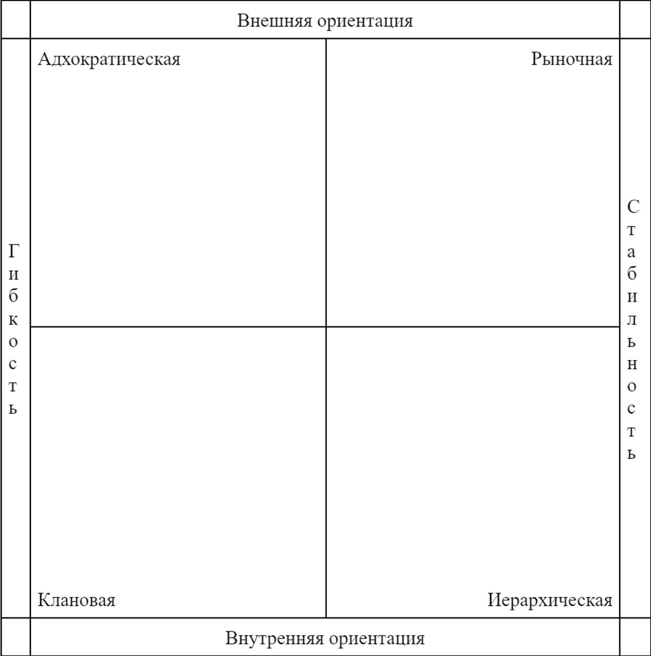 Для понимания первого вывода, как и всех остальных, необходимо рассказать про типологию организационных культур по Камерону и Куинну: